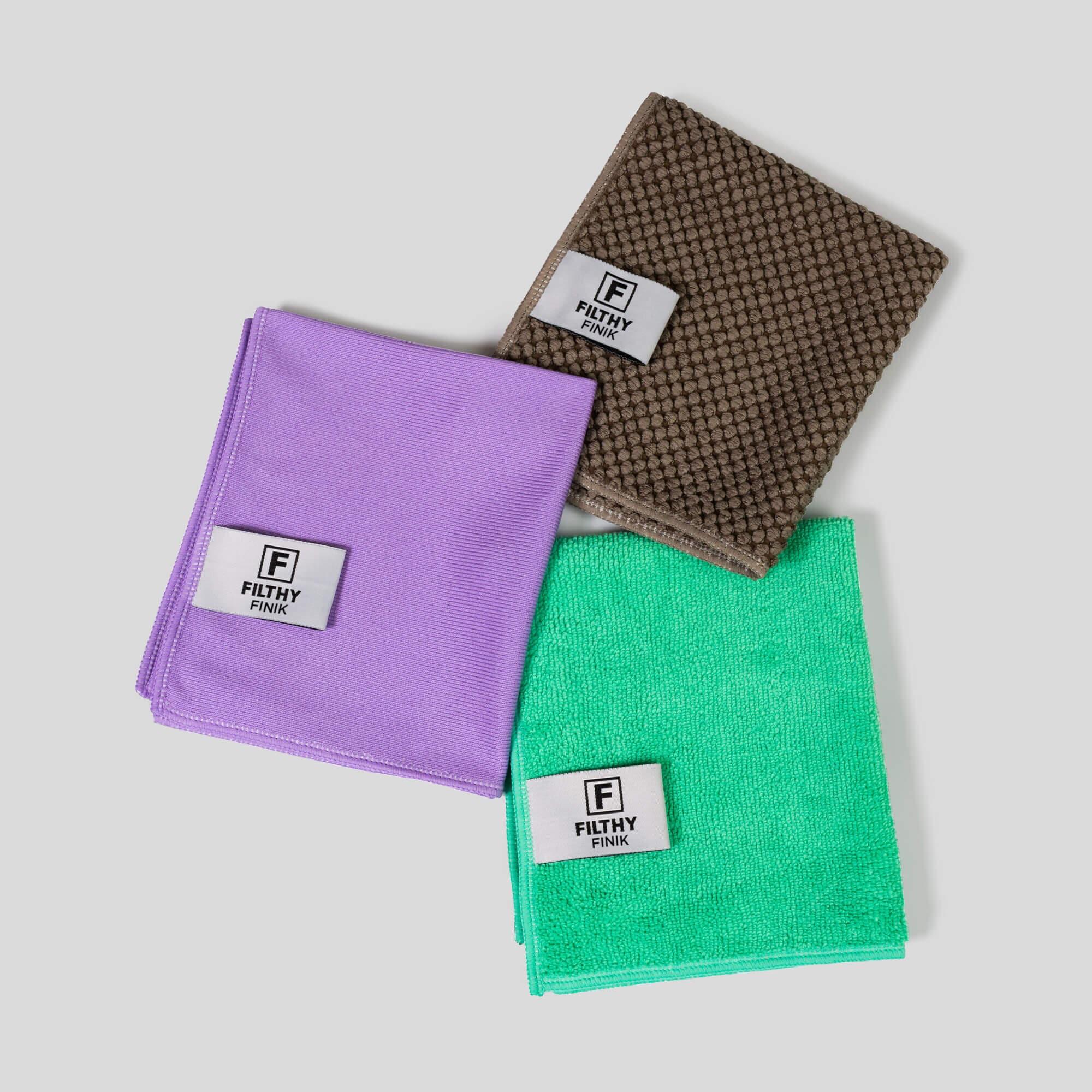 Get ready for the ultimate cleaning experience with our Clean Up Your Act bundle. This three-piece bundle includes Pure Filth, our all-purpose cleaning cloth, In The Buff, our polishing cloth, and Down & Dirty, our bathroom, kitchen and dusting cloth. With these versatile and effective cloths, you can clean anything from the kitchen sink to bathroom tiles with ease.